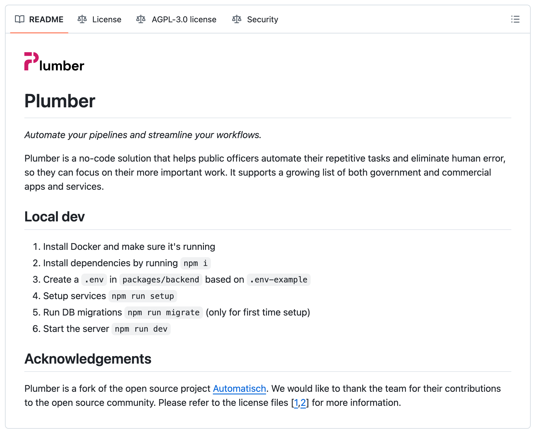 Plumber is part of the Open Government Products in Singapore. Some time ago, Singapore Government Agencies started adopting our product for their E-Government automation solution called Plumber. The project is a fork of Mation’s open-source core automatisch.io.